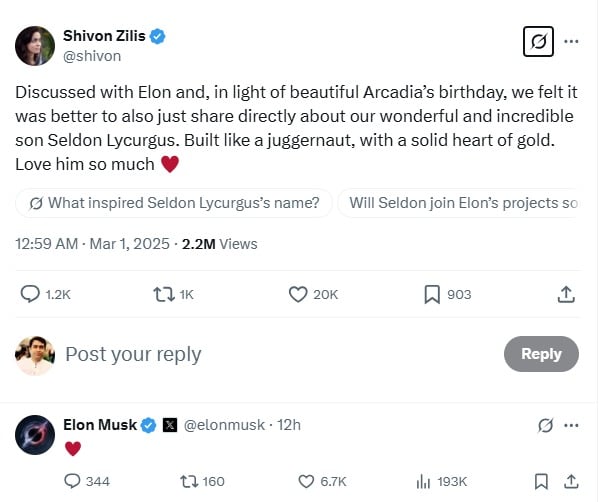 Elon Musk confirms the birth of his 14th child, with